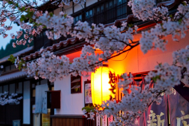 新庄村の昔ながらの町並みと、昼間の桜並木と夜桜の桜並木、是非どちらも楽しんで桜を満喫してみてくださいね。