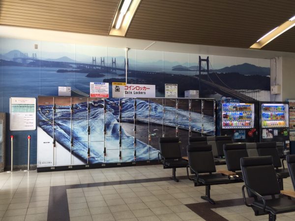 児島駅のデニムラッピングされたホームや、コンコースやコインロッカー、自動販売機からホーム駅名標に至るまで、デニム尽くしでどこでも記念撮影をしたくなる仕様です。