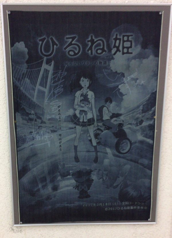 舞台でありロケ地の児島の児島市民交流センターにて、全国公開前に先駆け「ひるね姫~知らないワタシの物語~」のプレミアム上映会付き舞台挨拶が、2017年3月14日に行われました。