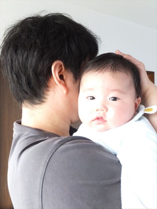パパの大きな手で背中を優しく撫でてもらい、トントンしてもらったら、子供はとても安心しますよ。