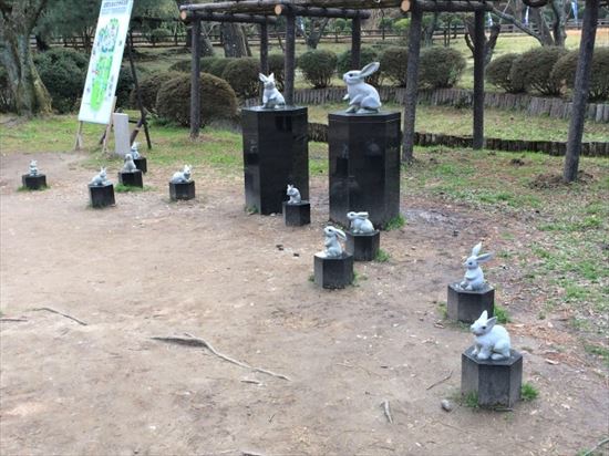 出雲大社の東にある、島根県立美術館には、宍道湖うさぎといった12匹の野外彫刻作品があります。
