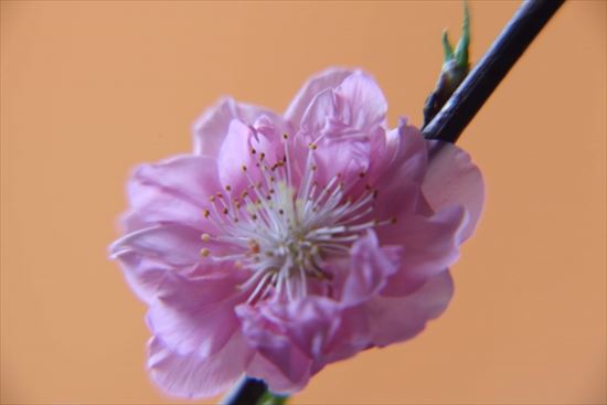 桃の花は、枝から花までの花柄が短く、枝から直接花が咲いているように見えます。