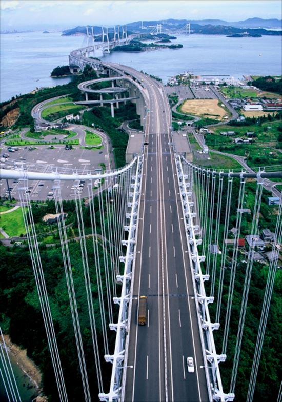 本州と四国を結ぶ瀬戸大橋。