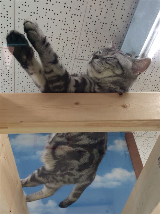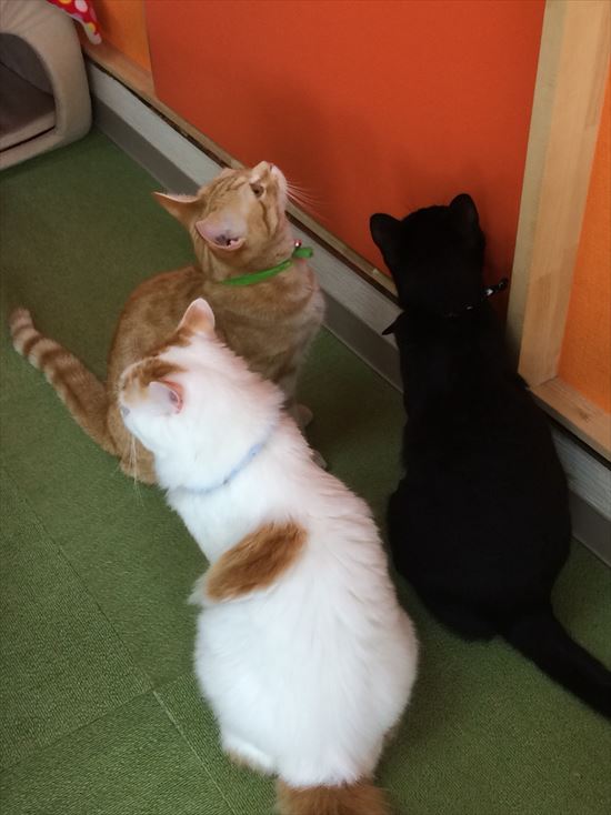 そして、真上から猫ちゃんに様子をうかがわれます。