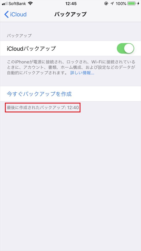 (9)バックアップが完了すると、最新のバックアップの日時が表示されます。