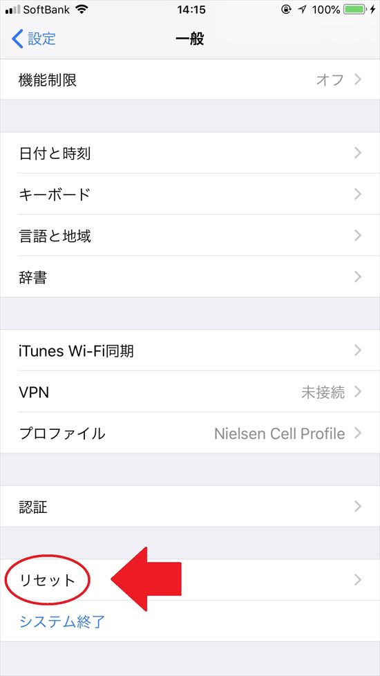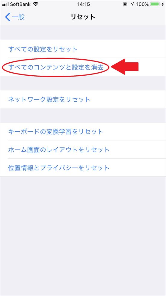 (3)「すべてのコンテンツと設定を消去」をタップします。