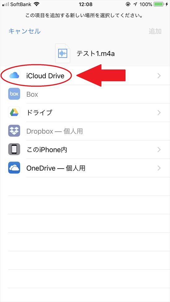 (4)「この項目を追加する新しい場所を選択してください」画面になるので「iCloud Drive」をタップします。