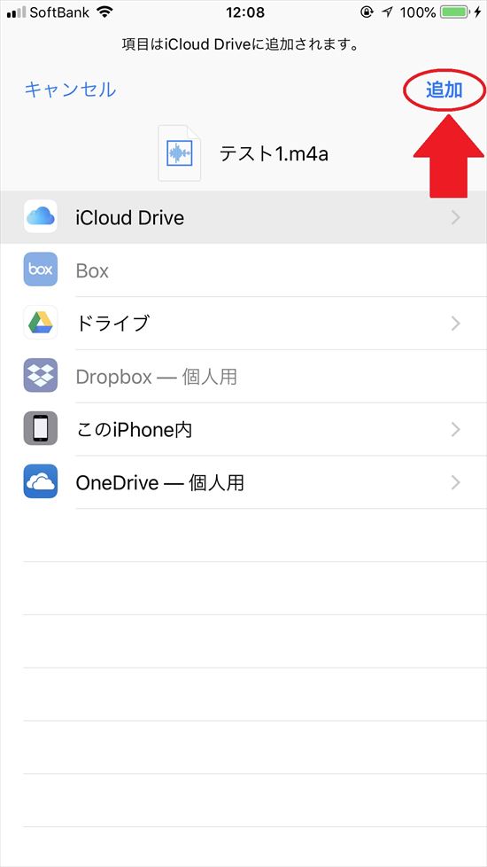 (5)「追加」がタップできるようになるので「追加」をタップします。これでiCloud Driveで共有され、画面は(2)に戻ります。