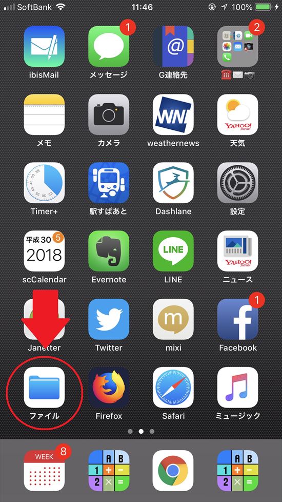 (6)iCloud Driveに共有したものを見たい時は、「ファイル」を使用します。「ファイル」アイコンの位置は利用者の設定によって異なります。