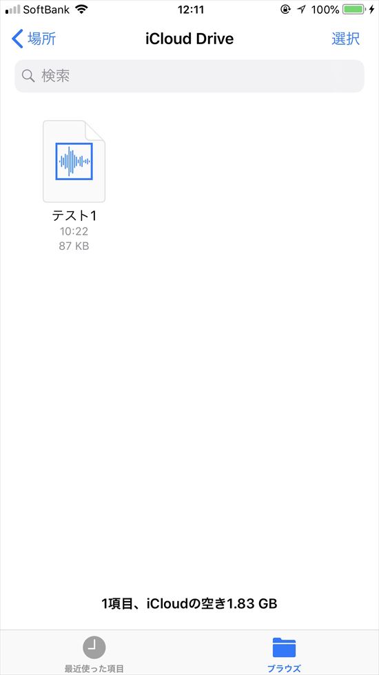 ここではボイスメモしかありませんが、他にiCloud Driveで共有しているものが有れば、それらも同時に表示されます。