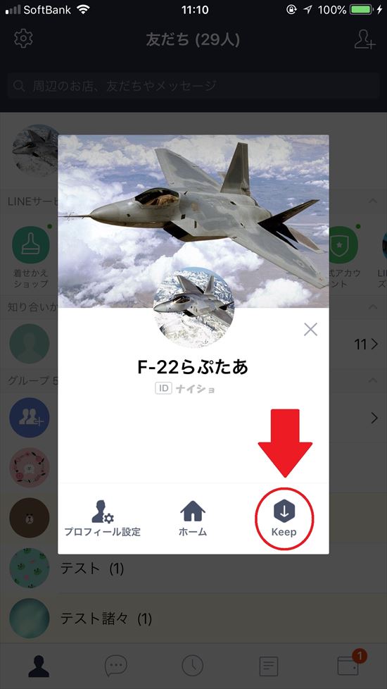 (3)自分のプロフィールの画面が表示されるので右下の「Keep」をタップ。