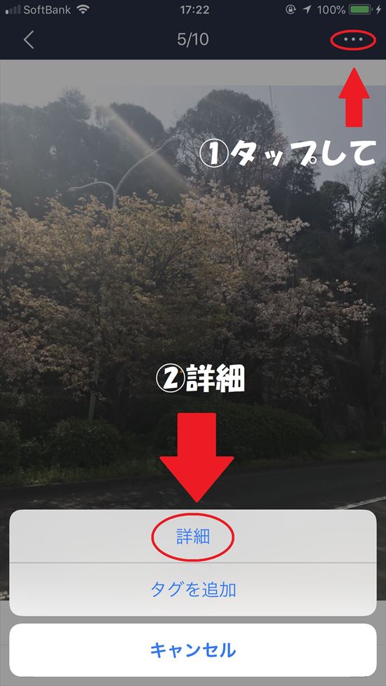 保存したもののサイズは、「Keep」で確認した画面の、右上の「…」をタップし、「詳細」をタップすると確認できます