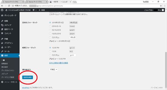 15.画面を下にスクロールさせ、「変更を保存」をクリックします。これでWordPressの設定は完了です。