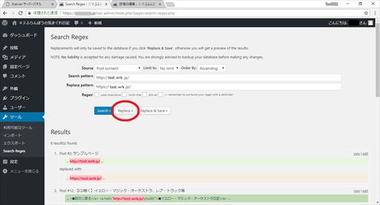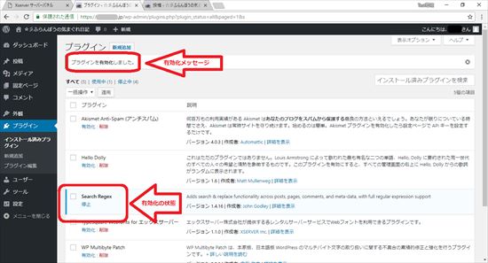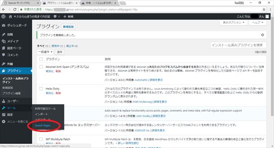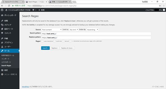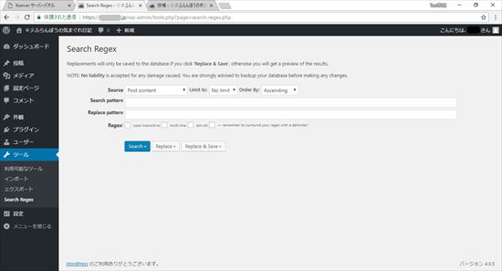 手作業で行うのは大変なので、「Search Regex」と言う、WordPressのプラグインを使用してみます。