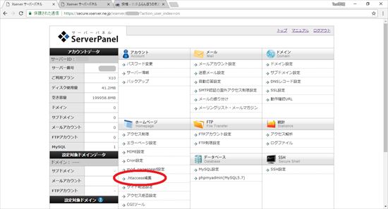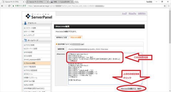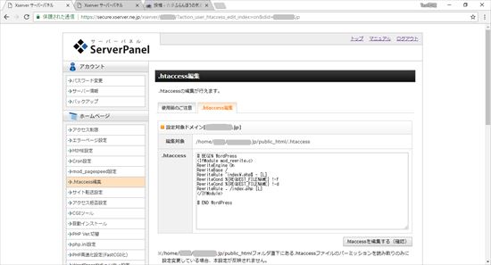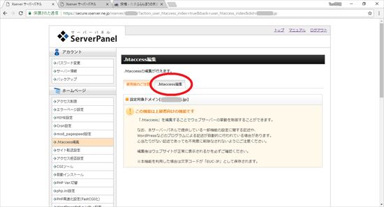 16.エックスサーバー・サーバーパネルから「.htaccess編集」をクリックします。