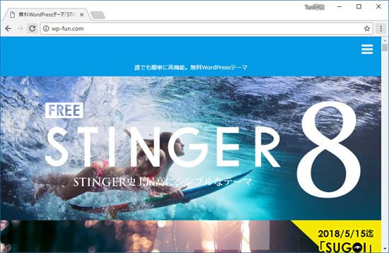 有料の場合でも基本的な動作は同じですが、画面表示が若干違う場合があります。WordPress バージョンは 4.9.5、Stingerは 5 が入手できなかったので8 ver20171207 で検証しています。