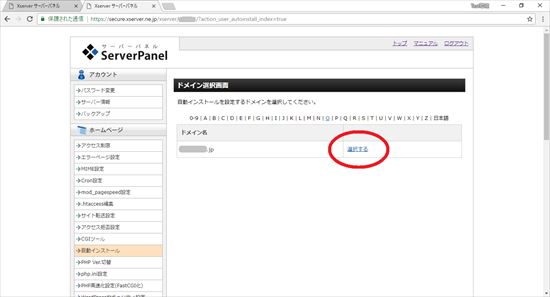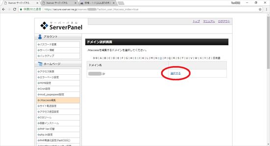 10.ドメイン選択画面からSSL化したドメインの「選択する」をクリックします。