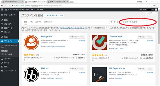 24.プラグインを追加の画面になりますので、「プラグインを検索」のところに「Search Regex」と入力します。