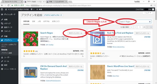 25.入力し終えたら自動的にSearch Regexが検索され、画面に表示されますので「今すぐインストール」をクリックします。