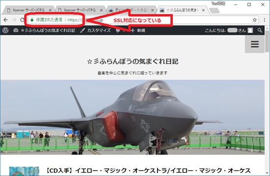 8.うまくいくと、“https://”を付けたアドレスで表示させる事ができるようになります。