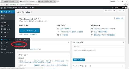 23. Search Regex を導入するためにWordPressのダッシュボード画面から「プラグイン」-「新規追加」を選びます。