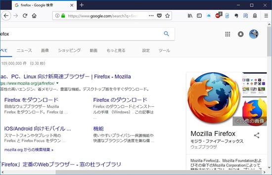 7. 状況を確認できたら、Firefoxを終了し、通常の方法で起動すれば、セーフモードでない通常の状態で起動します。
