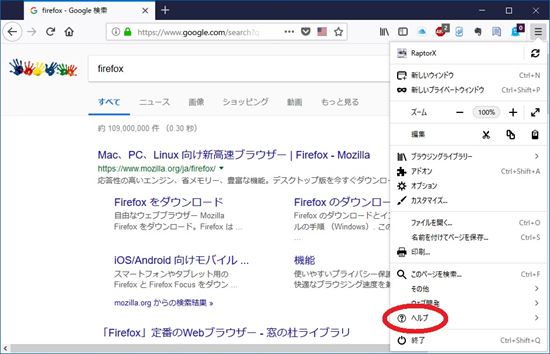 セーフモードで起動する方法はいくつかありますが、ここでは既にFirefoxを起動させた状態からセーフモードで再起動させる方法を紹介します。