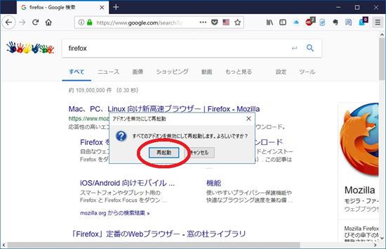 3-3.Firefoxを再起動して、不具合が起こるか確認します。