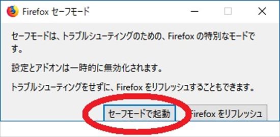 2.Firefoxをセーフモードで起動しても不具合が起きるか確認する