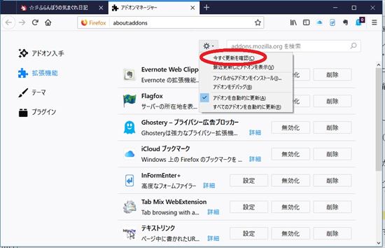 パソコンを再起動する、Firefoxを再起動する、と言った基本的な作業を行っても不具合が発生するとしましょう。