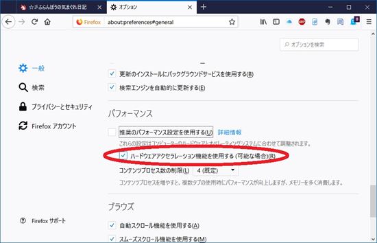 再度Firefoxを起動し、問題が発生しないようならば、原因はグラフィックドライバーと思われます。
