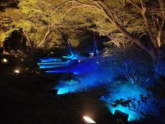 「水香江」ではもともとあった蓮池の跡地があり青い光で蓮池が再現されていて素晴らしくきれいです。