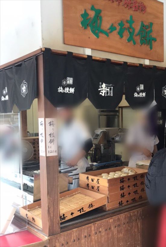参道にはたくさんの梅ヶ枝餅のお店があり、どこの梅ヶ枝餅を食べようか迷ってしまいます。