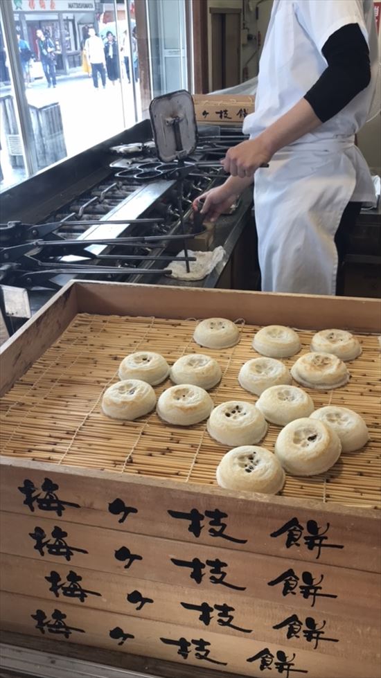 こちらの梅ヶ枝餅は皮が薄くて、ぱりぱりとした食感が特徴で焼き餅のおいしさが味わえます。