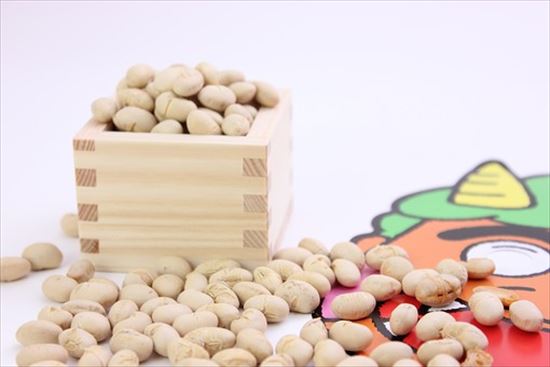 小袋に数個大豆が入っていて、それを豆まきの代わりに投げましょう。