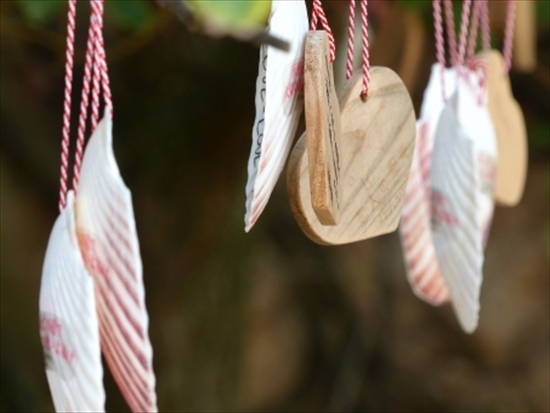 絵馬は貝殻の絵馬と、ハート型の木の絵馬の2種類があります。