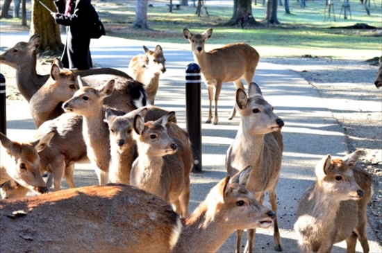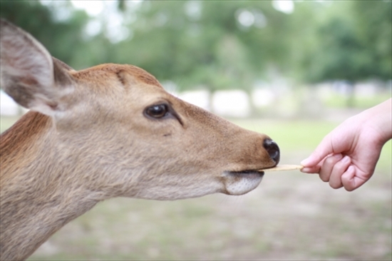 奈良公園の鹿は人に慣れていますが、野生動物です。