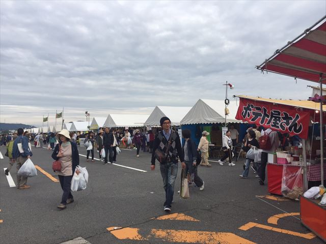 秋の「せんい児島 瀬戸大橋まつり」は、児島ボートレース場駐車場で開催されますので、一ヶ所にギュッと凝縮されます。